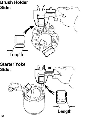 If the length is less than the minimum, replace the brush holder and starter yoke.