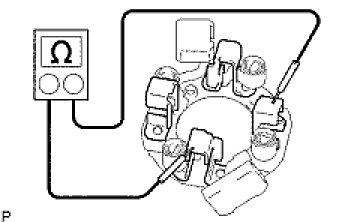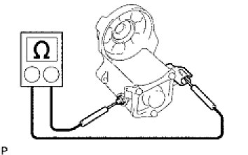 (1) Using an ohmmeter, measure the resistance between the positive (+) and negative (-) brush holders.