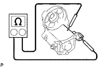 If the result is not as specified, repair or replace the brush holder assy.