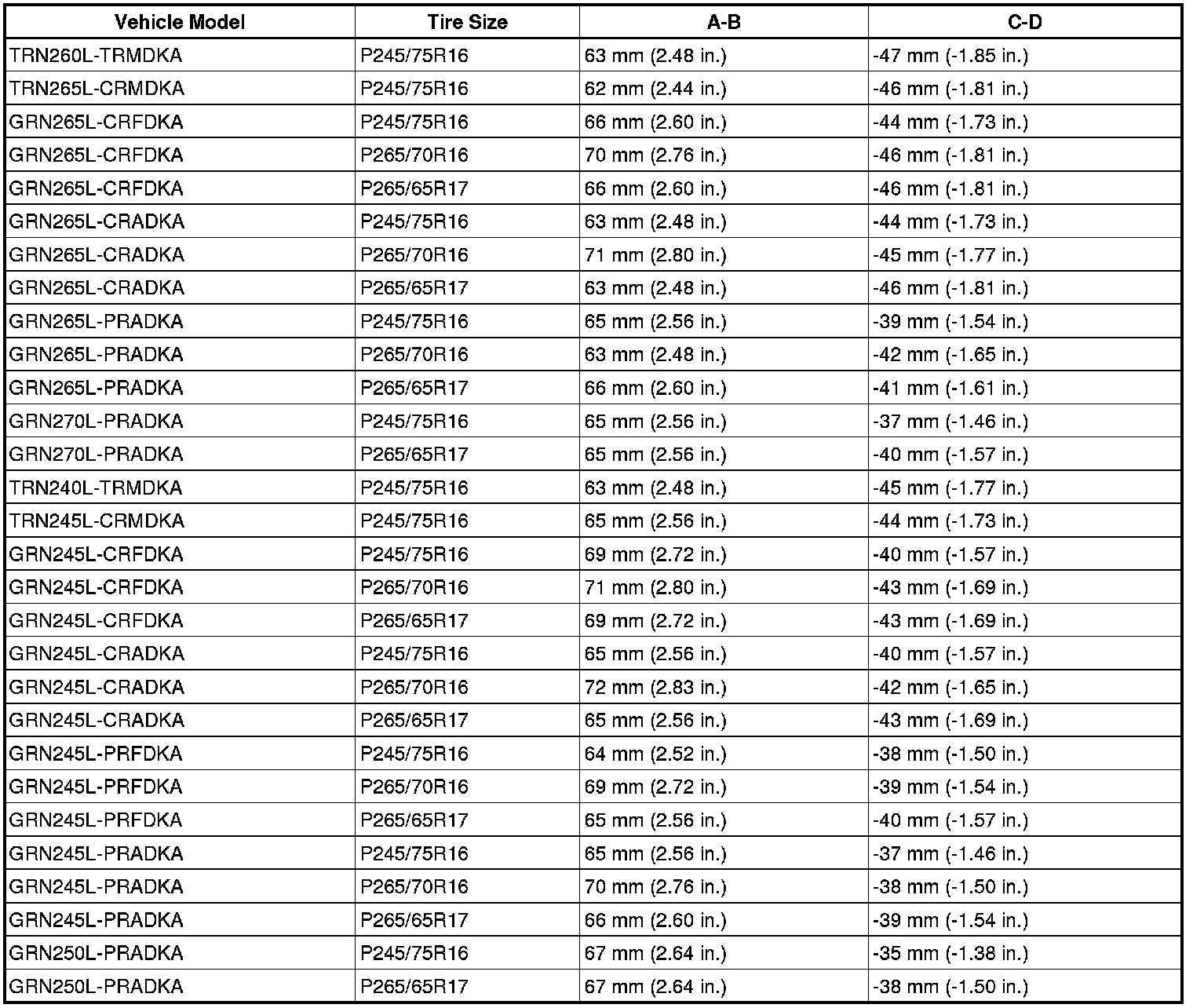 - Perform the inspection while the vehicle is empty (without spare tires or tools on board).