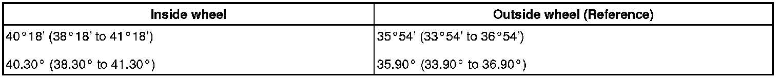 If the right and left turning angles of the inside and outside wheels are not within the specified ranges, check the right and left rack end lengths.
