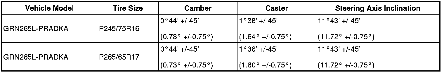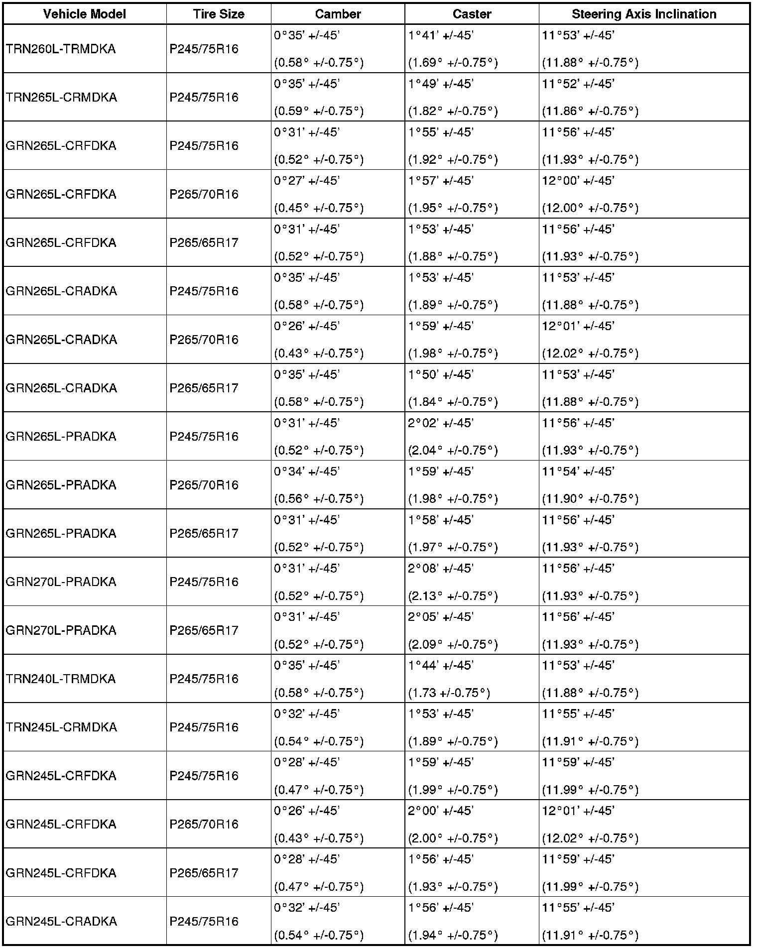 Camber, caster and steering axis inclination (for USA/ 3 leaf spring):