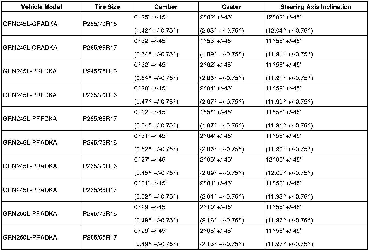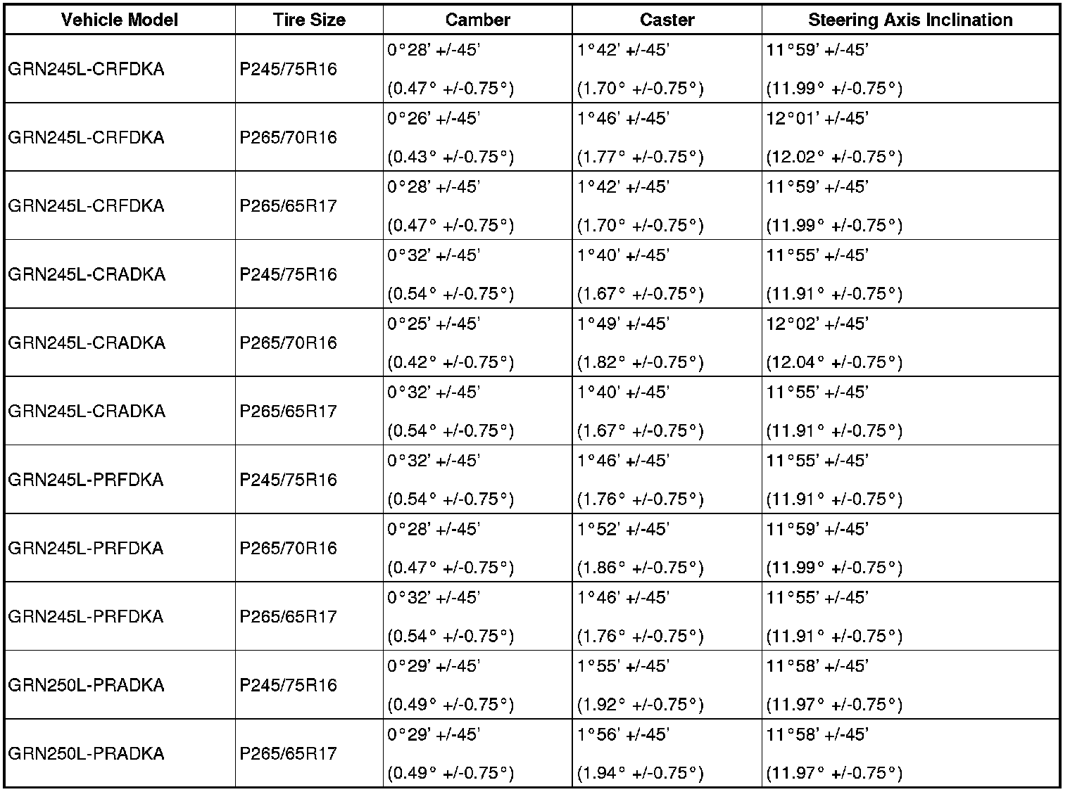SUSPENSION: FRONT WHEEL ALIGNMENT (for 4WD and Pre-Runner): ADJUSTMENT