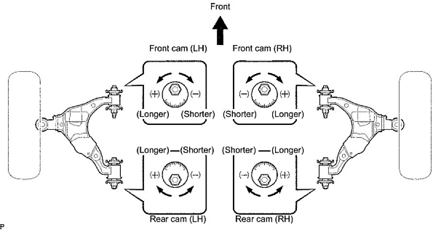 (b) Turn camber adjust cam No. 2 and the toe adjust cam and adjust the camber and the caster.