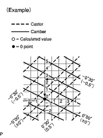 - The tolerance for the difference between the left and right wheels is 30' (0.50°) or less for both the camber and caster.