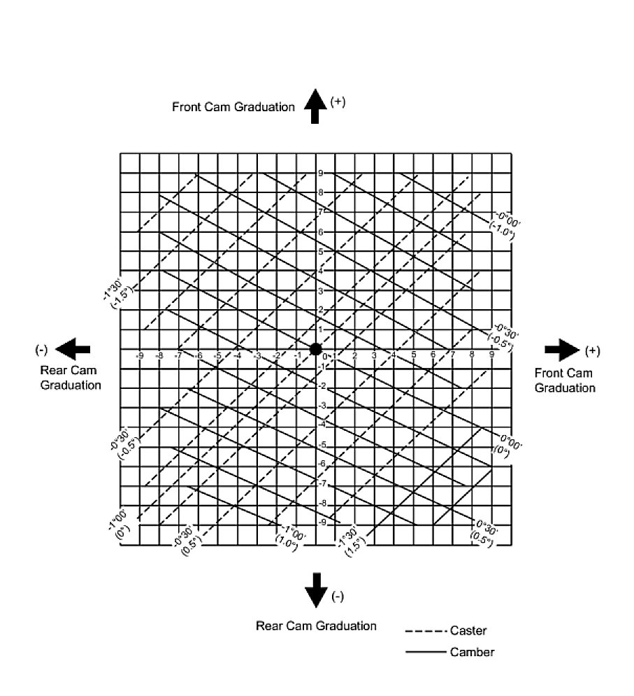 (3) As shown in the chart, read the distance from the marked point to 0 point, and adjust the front and/or rear adjusting cams accordingly.