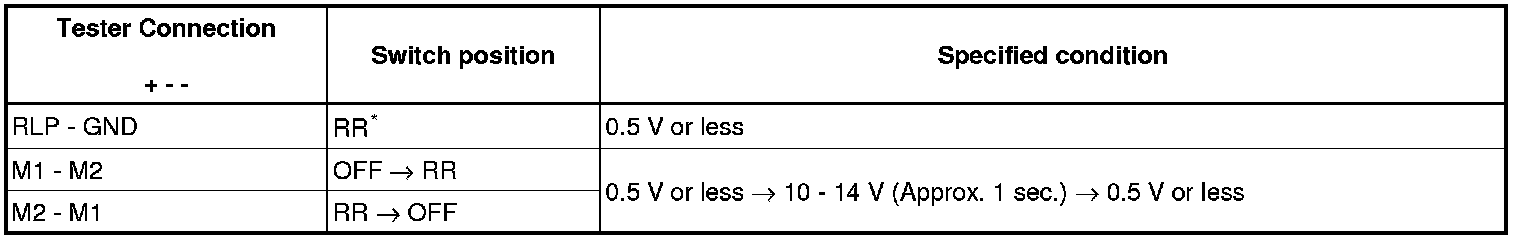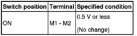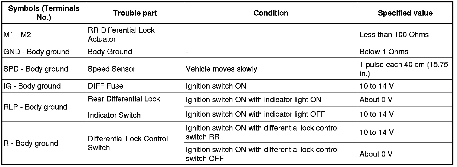 (2) Using a voltmeter, measure the voltage when the differential lock control switch is in the positions shown in the table.