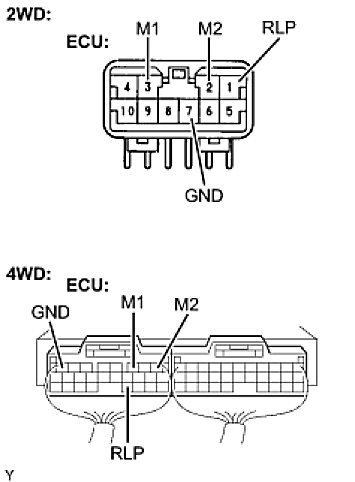 HINT: *: The rear differential should be locked mechanically. If the result is not as specified, replace the ECU.