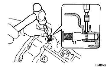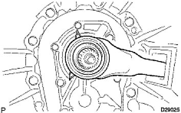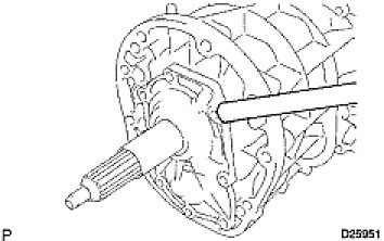 (b) Using a brass bar and a hammer, remove the front bearing retainer from the transmission case.