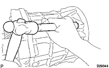 (b) Using a plastic hammer, remove the clutch housing from the transmission case.