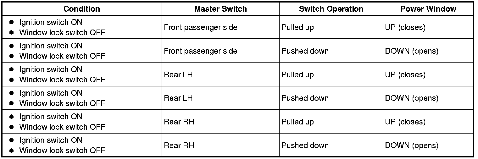 (b) Check that the power windows, except the driver side power window, operate as follows: