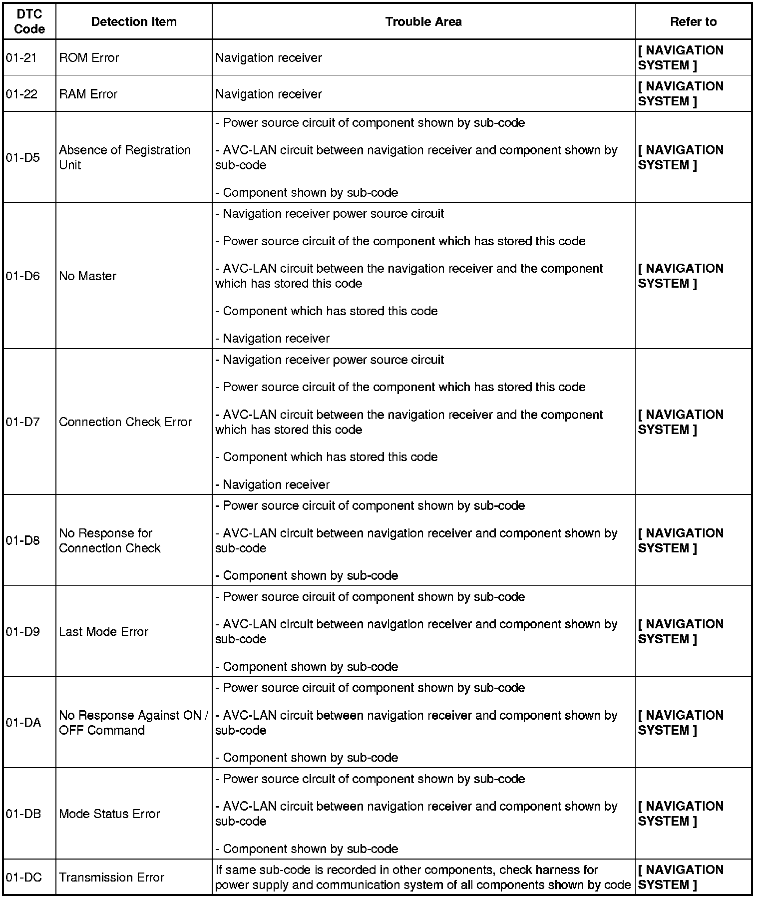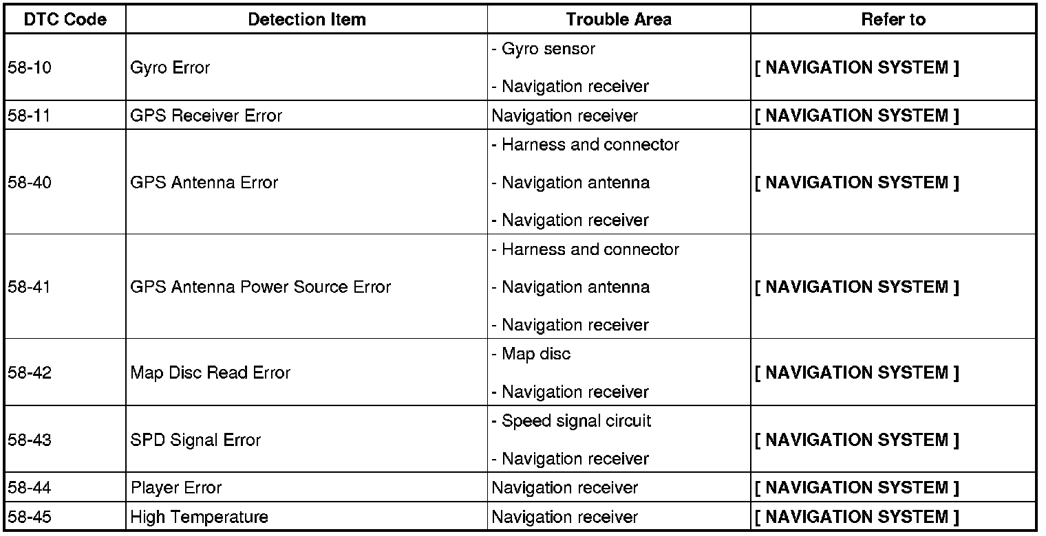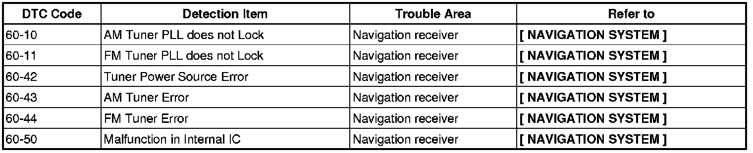 NAVIGATION: NAVIGATION SYSTEM (for CrewMax): DIAGNOSTIC TROUBLE CODE CHART