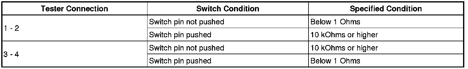 NOTE: In the table below, the values listed under "Normal Condition" are reference values. Do not depend solely on these reference values when deciding whether a part is faulty or not.