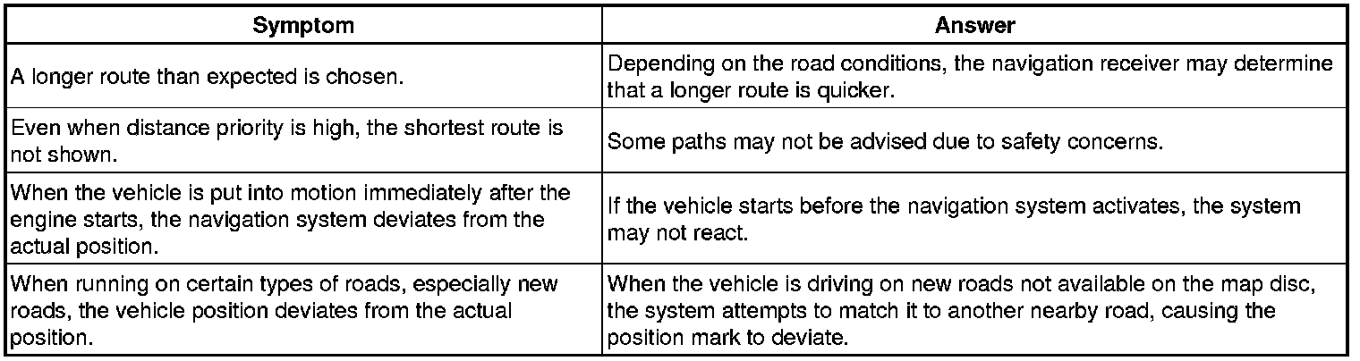 (b) The following symptoms are not a malfunction, but are caused by errors inherent in the GPS, gyro sensor, speed sensor, and navigation receiver.