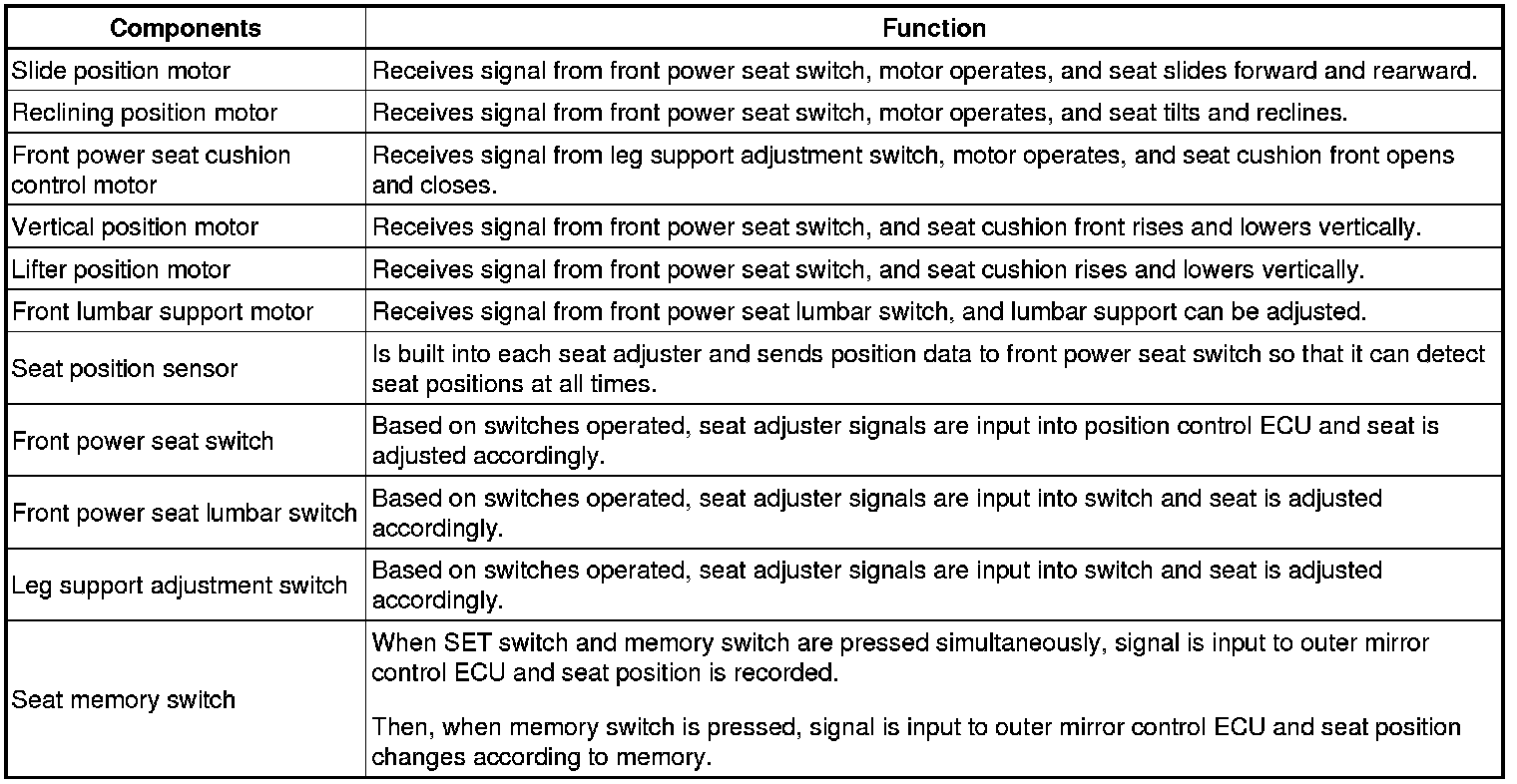 1. FRONT POWER SEAT CONTROL SYSTEM DESCRIPTION