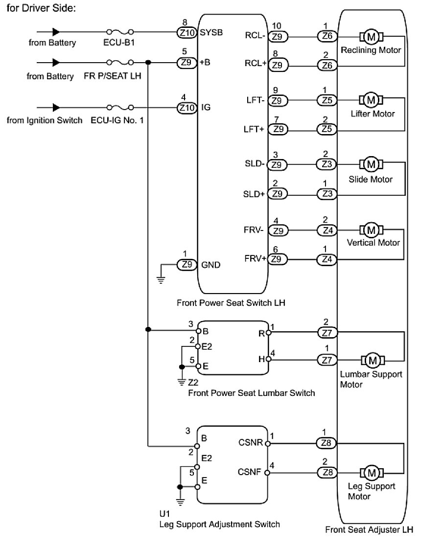 NG -- CHECK HARNESS AND CONNECTOR (LEG SUPPORT ADJUSTMENT SWITCH - LEG SUPPORT MOTOR LH)