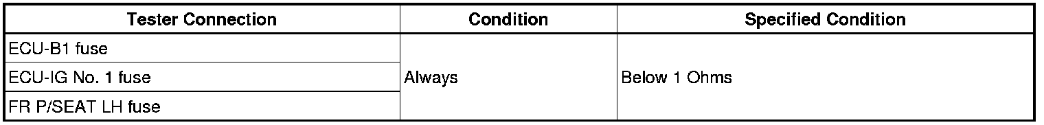 2. INSPECT FUSE (ECU-B1, ECU-IG No. 1, FR P/SEAT)