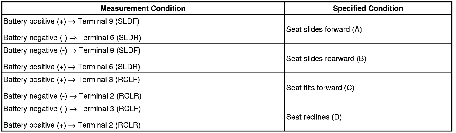 (b) Apply battery voltage and check the operation of the power seat.
