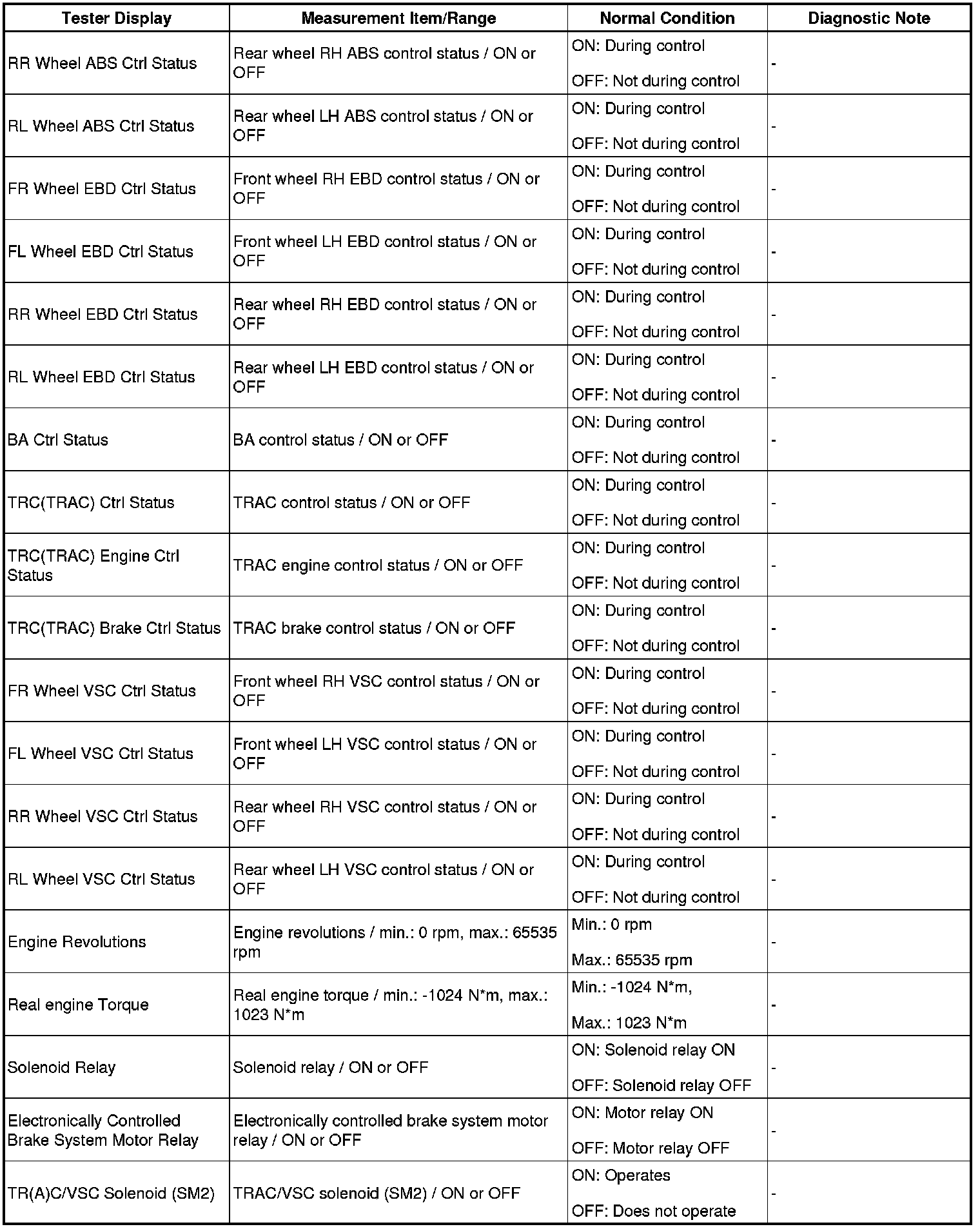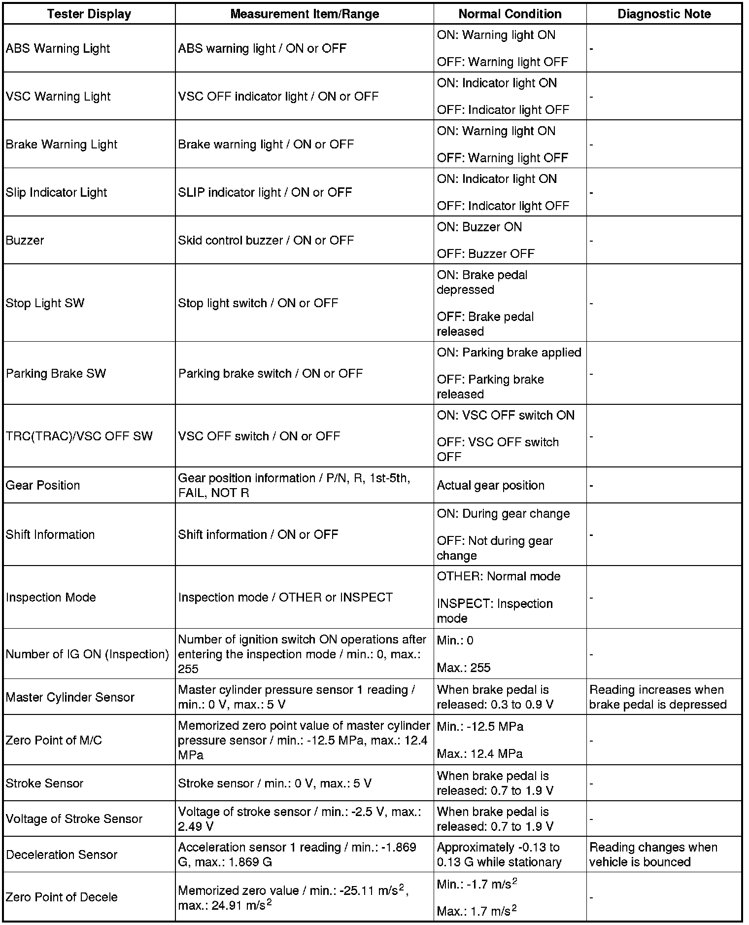 HINT: Using the Techstream to read the Data List allows the values or states of switches, sensors, actuators and other items to be read without removing any parts. This non-intrusive inspection can be very useful because intermittent conditions or signals may be discovered before parts or wiring is disturbed. Reading the Data List information early in troubleshooting is one way to save diagnostic time.