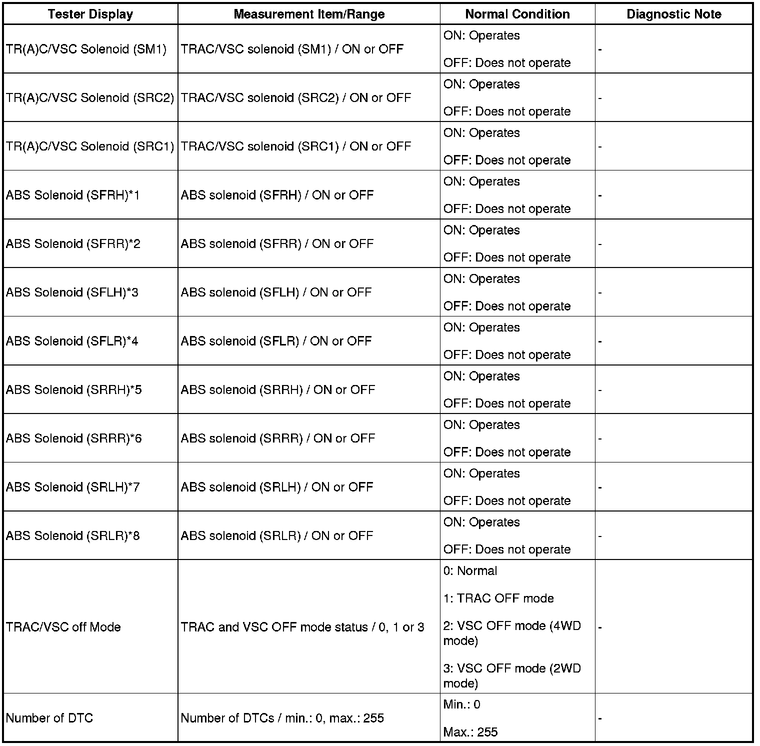 - *7: SRLH (S: Solenoid, R: Rear, L: Left, H: Holding)