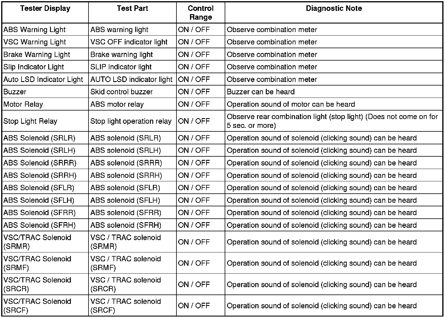 - The Active Tests of the ABS solenoid, ABS motor relay, ABS warning light and BRAKE warning light are available when the vehicle is stopped.