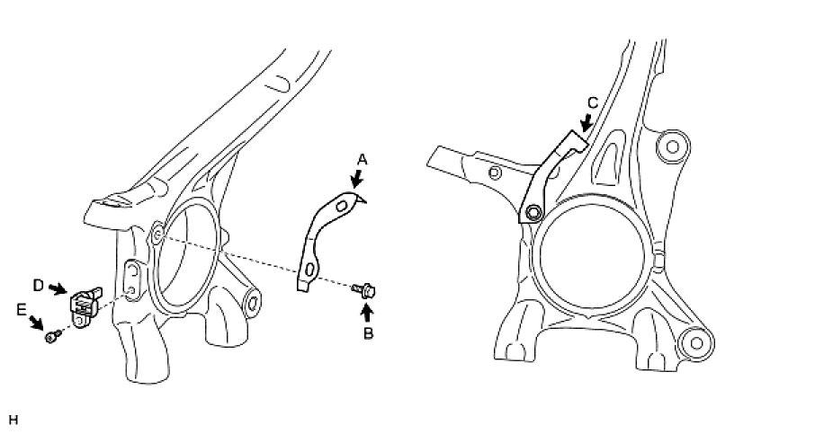 NOTE: Install the bracket so that the rotation stopper (labeled C) touches the knuckle.