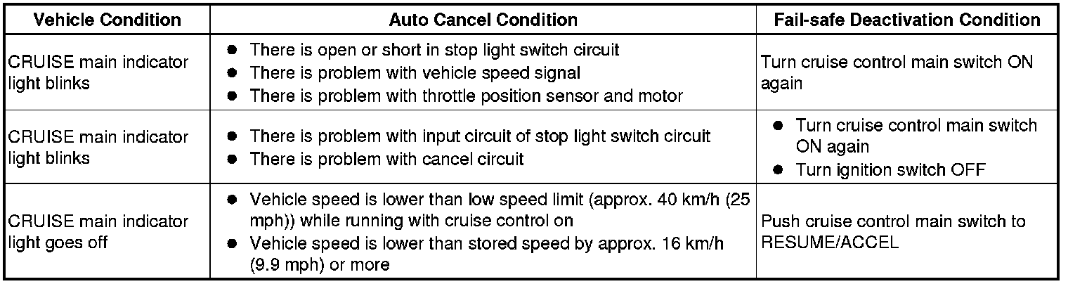 CRUISE CONTROL SYSTEM: FAIL-SAFE CHART