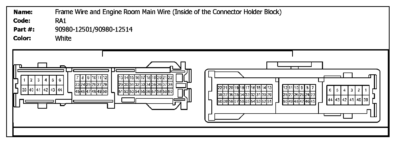 RA1 (Frame Wire And Engine Room Main Wire (Inside Of The Connector Holder Block)):