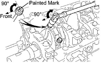 (m) Tighten the crankshaft bearing cap bolts another 90° in the order shown above.