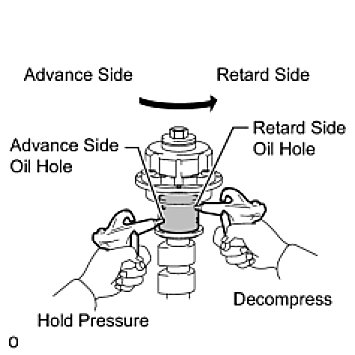 - Do not release the air pressure from the advance side oil hole first. The tube may abruptly shift in the retard direction and break the lock pin.