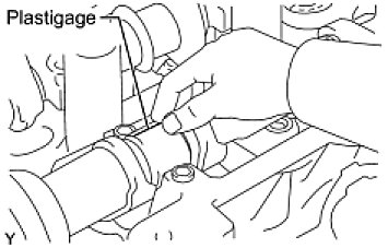 (d) Lay a strip of Plastigage across each of the camshaft journals.