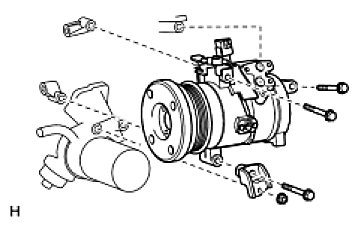 (b) Remove the 3 bolts, nut, cooler compressor and No. 1 compressor stay.