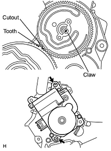 (1) Set the plate so that the cutout part engages with the tooth of the gear, and attach the claw to install the main plate.