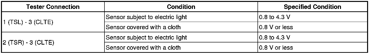 If the result is not as specified, replace the solar sensor.