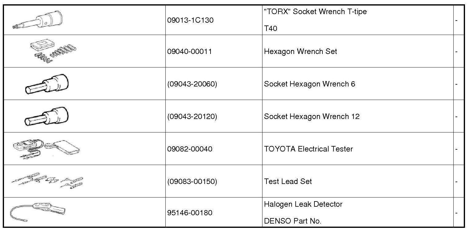 PREPARATION: AIR CONDITIONING: RECOMMENDED TOOLS