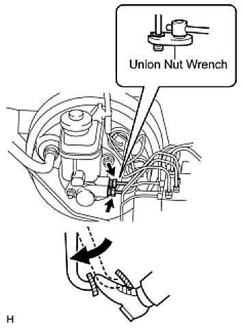 (a) Using a union nut wrench, disconnect the 2 brake lines from the master cylinder.
