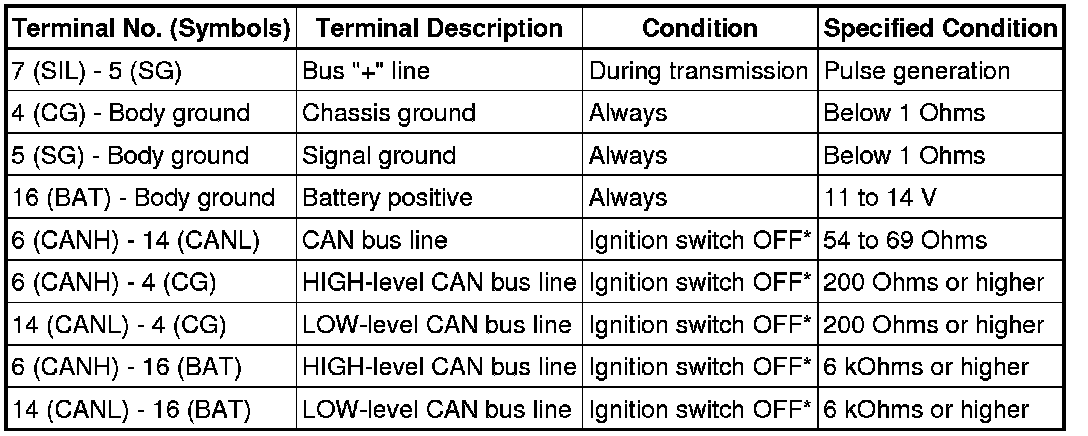 NOTE: *: Before measuring the resistance, leave the vehicle as is for at least 1 minute and do not operate the ignition switch, any other switches, or the doors.