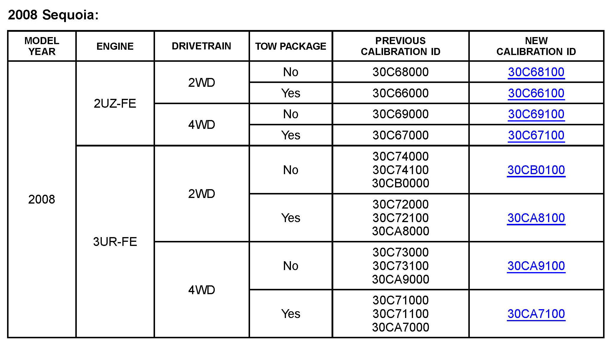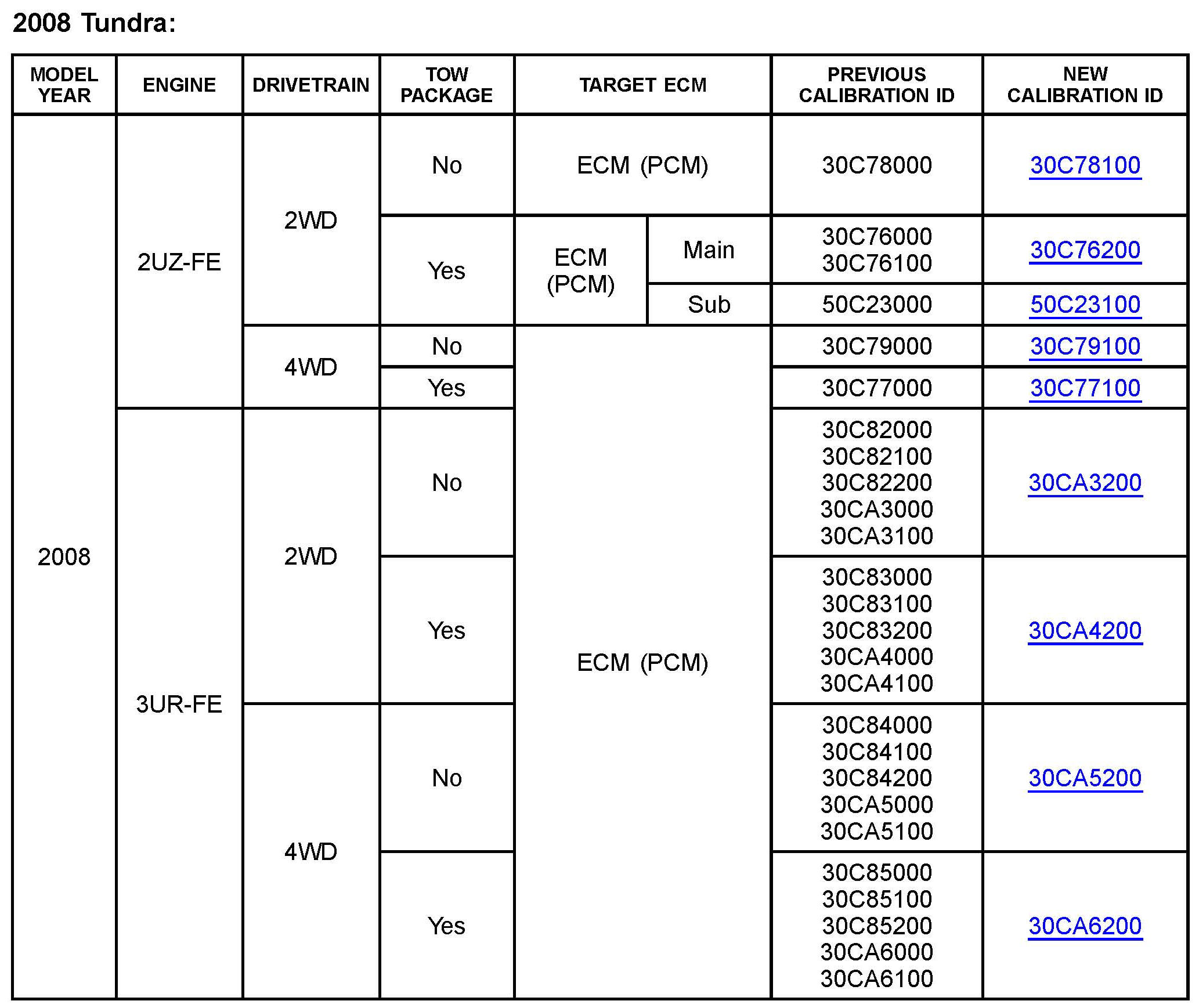 Some 2008 model year Sequoia and 2007 - 2008 model year Tundra vehicles may exhibit reduced cold-start heater warm-up performance in cold conditions. A newly designed Engine Control Module/ECM (SAE term: Powertrain Control Module/PCM) logic is available to address this condition. Use the following repair procedure to recalibrate the ECM (PCM).
