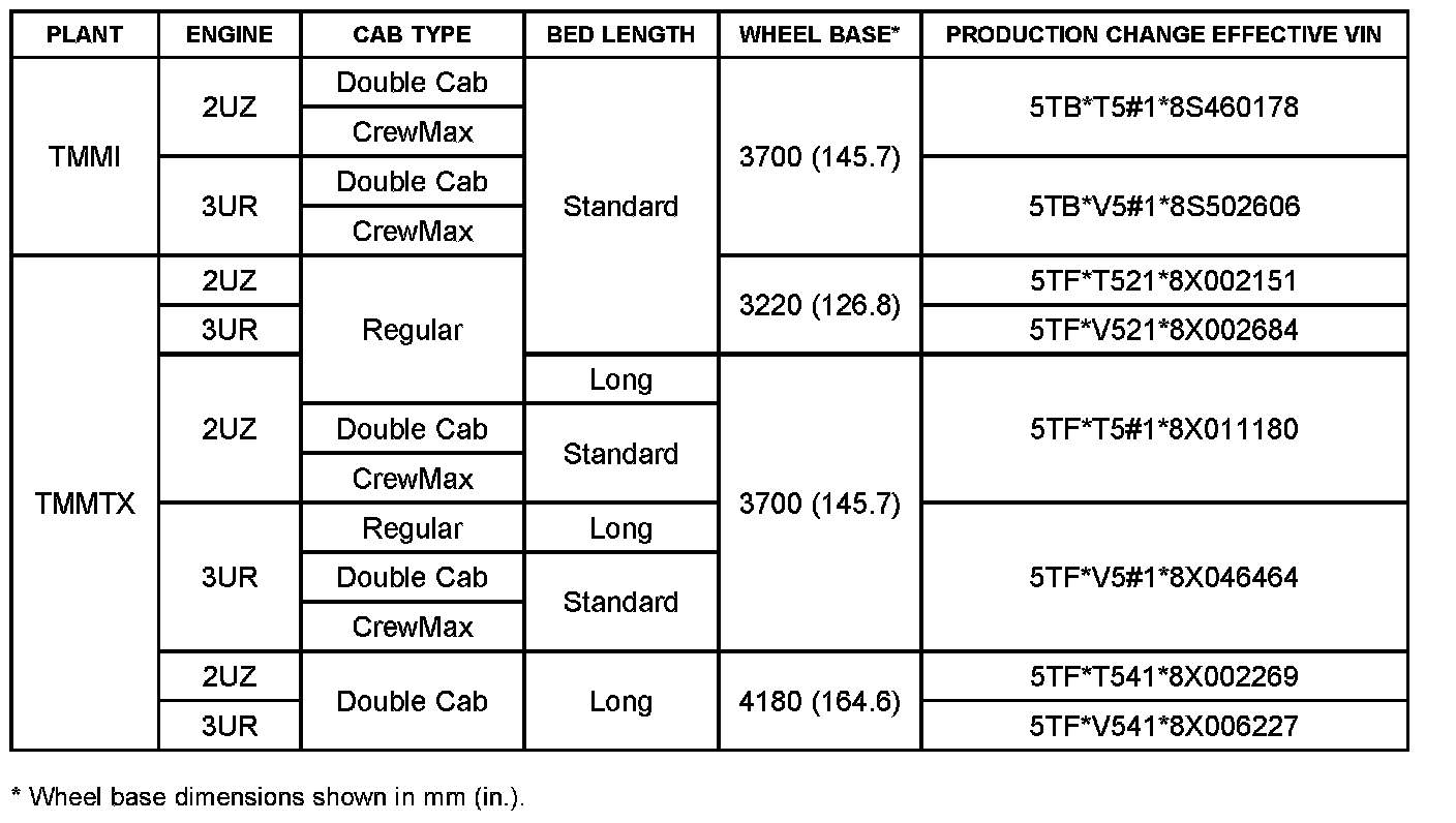 This TSB applies to vehicles produced BEFORE the Production Change Effective VINs shown.