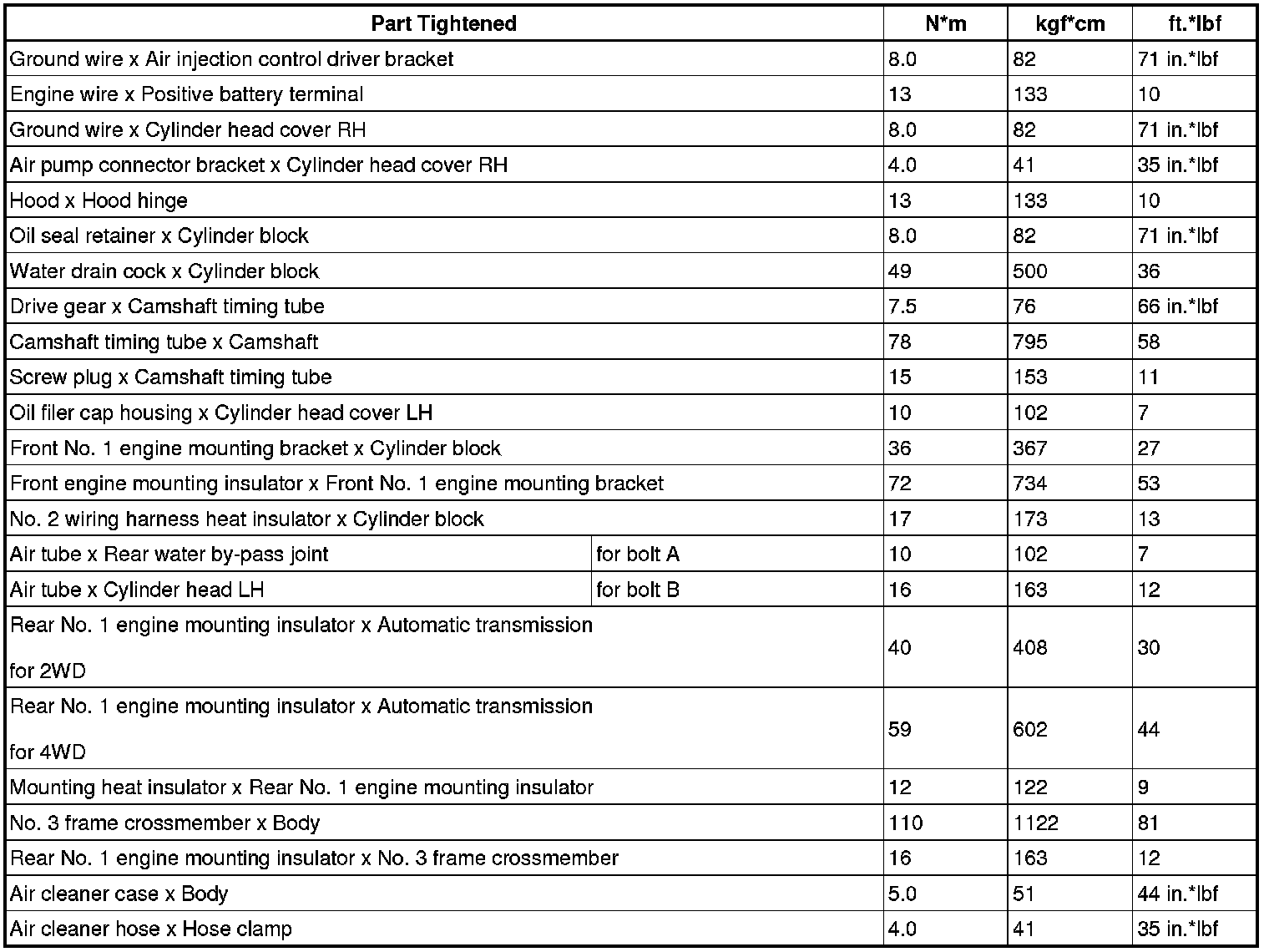 Torque Specifications