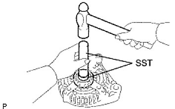 (d) To loosen the pulley nut, turn SST 1-A in the direction shown in the illustration.