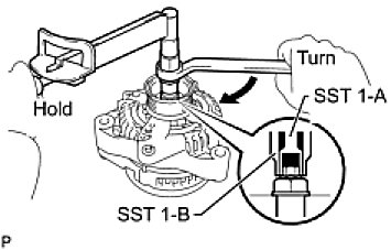 (a) Hold SST 1-A with a torque wrench, and tighten SST 1-B clockwise to the specified torque.