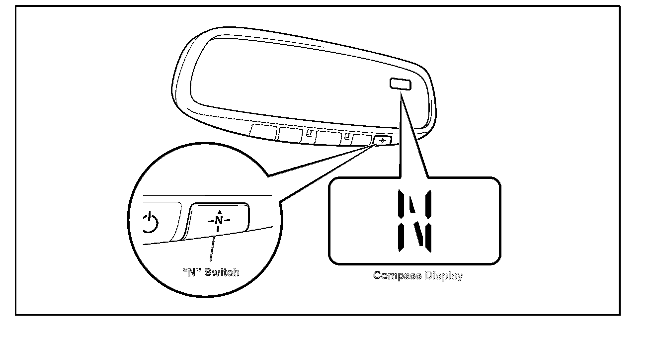 1. Turn the ignition switch to the "IG-ON" position and push and hold the "N" switch until the zone number appears on the compass display.