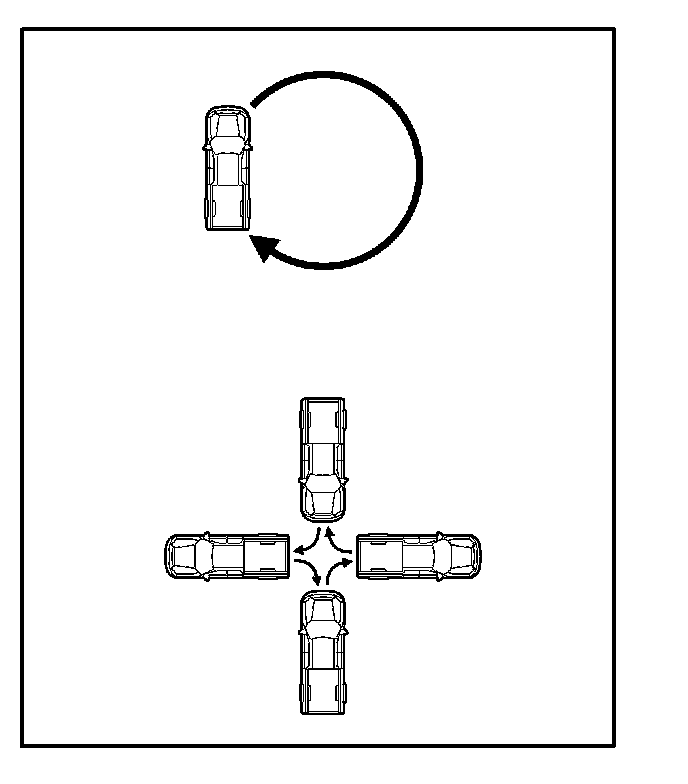 4. Drive the vehicle slowly at 5 mph (8 km/h) or less in a circle until the direction is displayed. If there is NOT enough space to drive in a circle, turn the car around as shown, doing two three-point turns in succession.