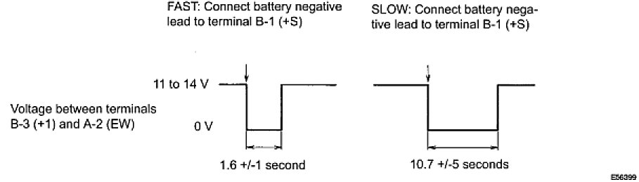 (5) Connect the battery's negative (-) lead to terminal B-1 (+S). Operate the intermittent wiper relay and check the voltage between terminals B-3 (+1) and A-2 (EW).