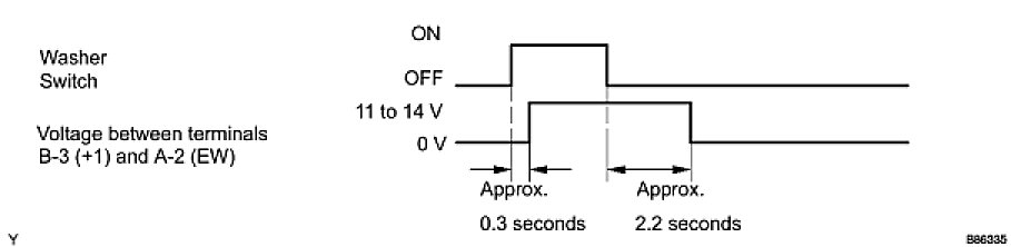 (4) Turn the washer switch ON and OFF, and check the voltage between terminals B-3 (+1) and A-2 (EW).