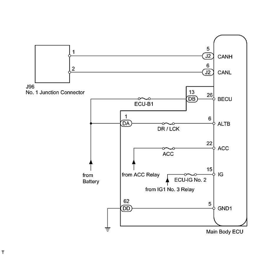 2. CHECK FOR OPEN IN CAN BUS WIRE (MAIN BODY ECU BRANCH WIRE)