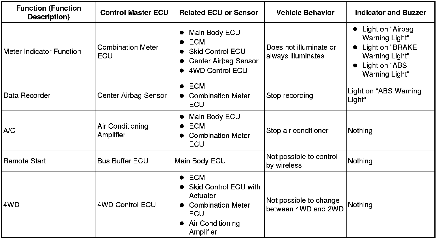 (a) When communication fails in any of the main wires (communication lines) due to a short circuit or other causes, the fail-safe function, which is specified for each system, operates to prevent the system from malfunctioning.