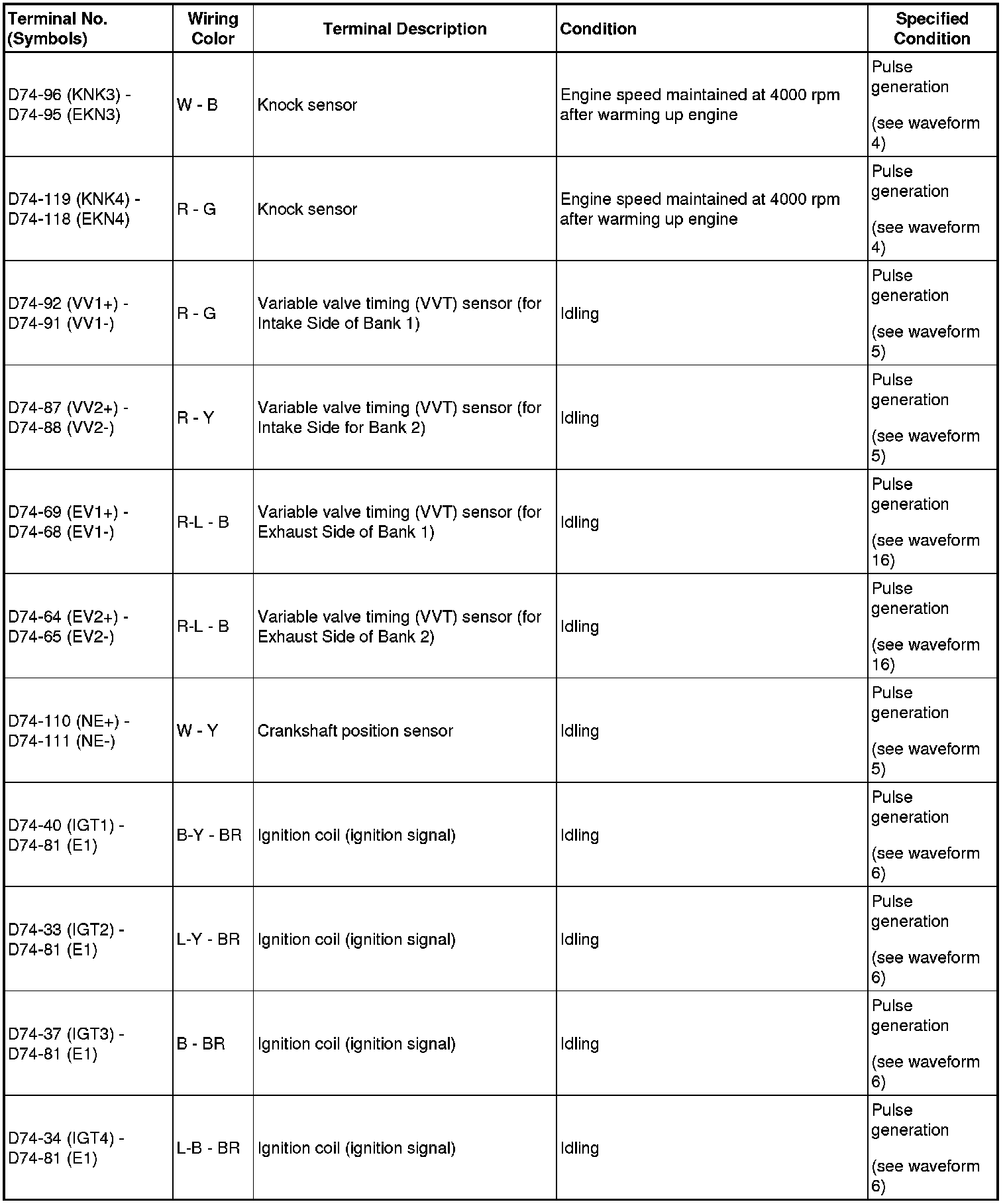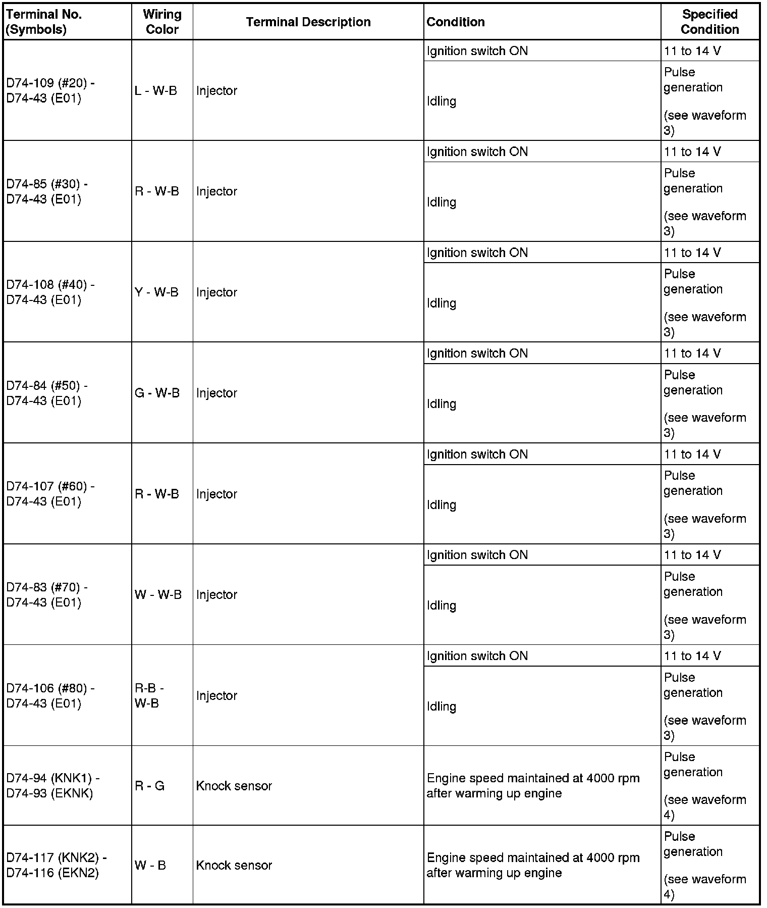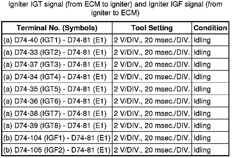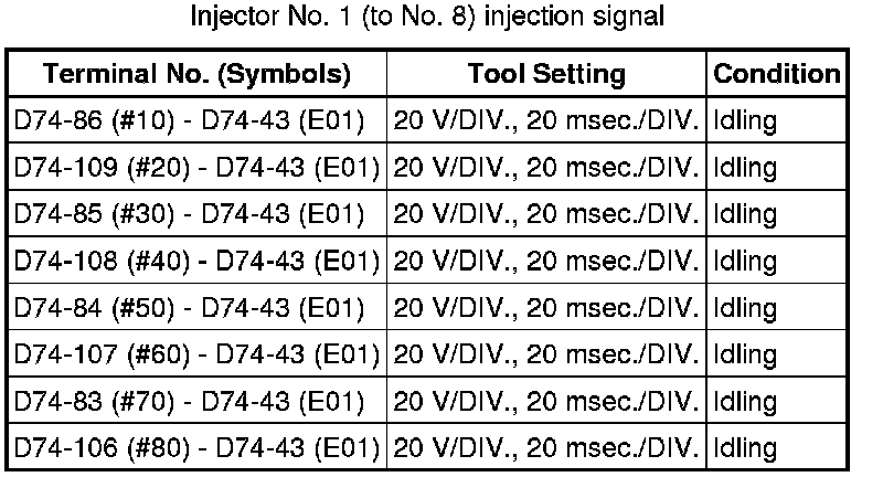 HINT: If the waveform is not similar to the illustration, check the waveform again after idling for 10 minutes or more.