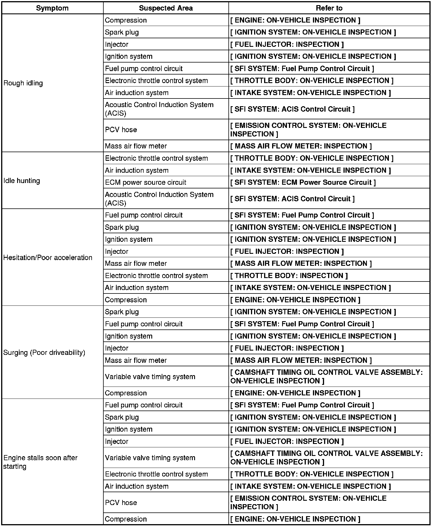 HINT: Use the table below to help determine the cause of the problem symptom. The potential causes of the symptoms are listed in order of probability in the "Suspected Area" column of the table. Check each symptom by checking the suspected areas in the order they are listed. Replace parts as necessary.